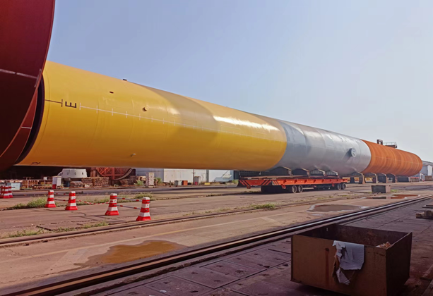 此次交工的78#單樁最大直徑8.4米,長102.8米,重1584噸,是該項(xiàng)目20根單樁中首先交付的,也是2022年中山基地發(fā)運(yùn)的首根單樁。