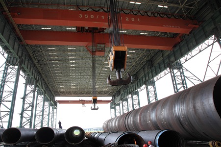 合肥基地可生產(chǎn)JCOE鋼管Φ406~1626mm;卷制鋼管Φ914~5080mm,外場(chǎng)最大起重能力350噸。